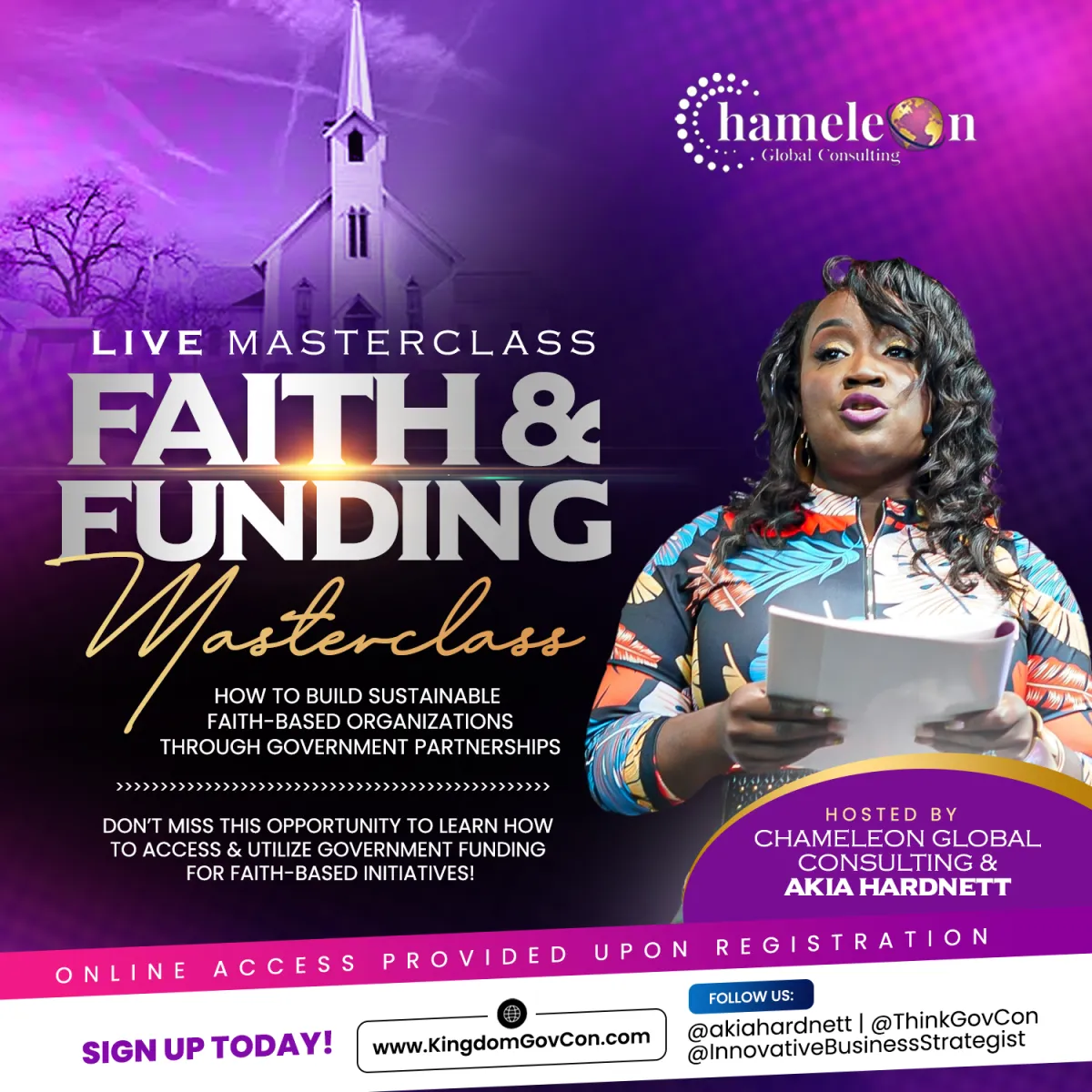 Faith & Funding Academy™ is a 6-month business development intensive for faith-based entrepreneurs, ministries, and nonprofits. Learn to build compliant systems, secure grants and government contracts, and scale with strategy and stewardship. Combining faith, funding, and execution—this program equips you to lead, grow, and sustain lasting Kingdom impact.